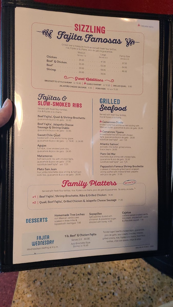 No meal at Pappasito's would be complete without indulging in their heavenly desserts. The Homemade Tres Leches is a rich Mexican vanilla cake drizzled in three milks and topped with airy meringue, all for a mere $10.95. Also, don’t overlook the Fiesta Fudge Brownie, which is a decadent delight served warm with vanilla ice cream.